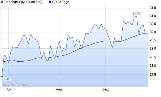 Mit dem Rücksetzer auf 29,86 EUR hat die De'Longhi-Aktie am 25.09.2025 die 38-Tage-Linie nach unten gekreuzt.