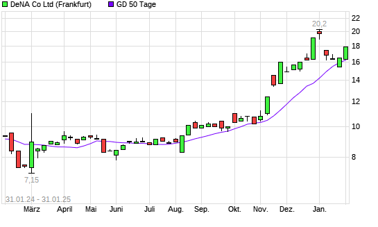 Mit dem Anstieg auf 17,00 EUR hat die DeNA-Aktie am 30.01.2025 die 50-Tage-Linie nach oben gekreuzt.