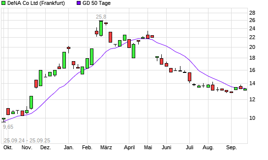 Mit dem Anstieg auf 13,40 EUR hat die DeNA-Aktie am 24.09.2025 die 50-Tage-Linie nach oben gekreuzt.