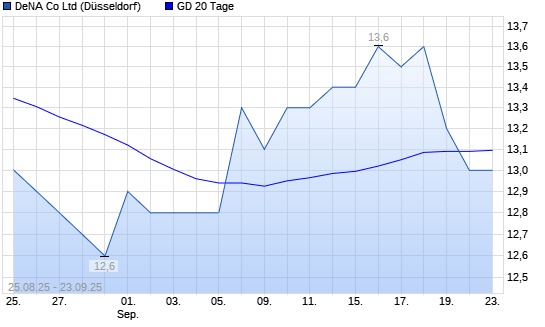 Mit dem Rücksetzer auf 13,10 EUR hat die DeNA-Aktie am 22.09.2025 die 20-Tage-Linie nach unten gekreuzt.