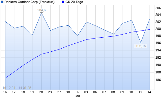 Mit dem Rücksetzer auf 196,15 EUR hat die Deckers Outdoor-Aktie am 13.01.2025 die 20-Tage-Linie nach unten gekreuzt.