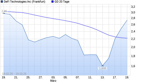Mit dem Anstieg auf 2,48 EUR hat die Defi Technologies-Aktie am 18.03.2025 die 20-Tage-Linie nach oben gekreuzt.