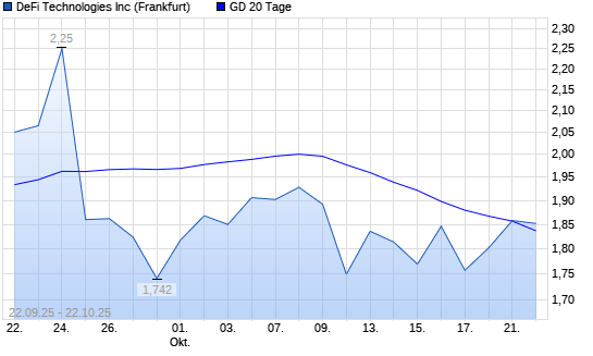 Mit dem Anstieg auf 1,86 EUR hat die Defi Technologies-Aktie am 21.10.2025 die 20-Tage-Linie nach oben gekreuzt.