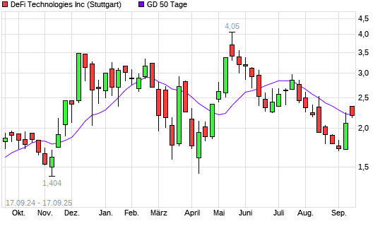 Mit dem Anstieg auf 2,23 EUR hat die Defi Technologies-Aktie am 16.09.2025 die 50-Tage-Linie nach oben gekreuzt.