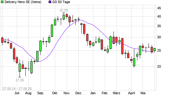 Mit dem Anstieg auf 24,67 EUR hat die Delivery Hero-Aktie am 26.05.2025 die 50-Tage-Linie nach oben gekreuzt.