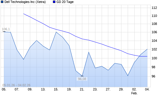 Mit dem Anstieg auf 100,32 EUR hat die Dell Technologies-Aktie am 03.02.2026 die 20-Tage-Linie nach oben gekreuzt.