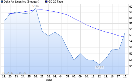 Mit dem Anstieg auf 56,27 EUR hat die Delta Air Lines-Aktie am 18.03.2026 die 20-Tage-Linie nach oben gekreuzt.