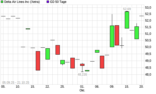 Mit dem Anstieg auf 51,06 EUR hat die Delta Air Lines-Aktie am 20.10.2025 die 50-Tage-Linie nach oben gekreuzt.