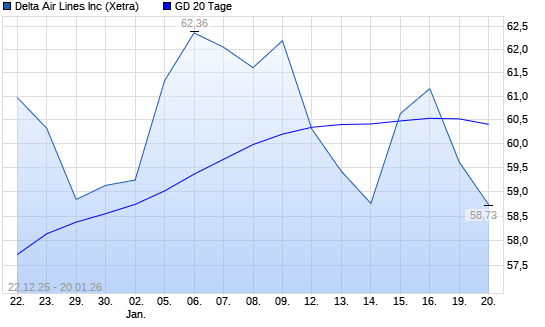 Mit dem Rücksetzer auf 59,49 EUR hat die Delta Air Lines-Aktie am 19.01.2026 die 20-Tage-Linie nach unten gekreuzt.
