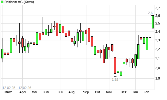 Mit dem Anstieg auf 2,34 EUR hat die Delticom-Aktie (ISIN DE0005146807) am 11.02.2026 ein neues 6-Monats-Hoch erreicht und damit den Kurs vom 10.02.2026 eingestellt.