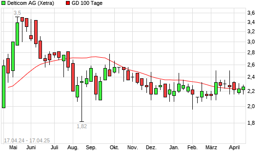 Mit dem Anstieg auf 2,24 EUR hat die Delticom-Aktie am 16.04.2025 die 100-Tage-Linie nach oben gekreuzt.