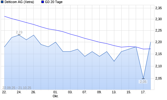 Mit dem Anstieg auf 2,12 EUR hat die Delticom-Aktie am 20.10.2025 die 20-Tage-Linie nach oben gekreuzt.