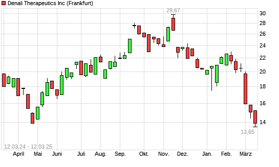 Mit dem Rücksetzer auf 13,86 EUR hat die Denali Therapeutics-Aktie (ISIN US24823R1059) am 11.03.2025 ein neues 3-Jahres-Tief erreicht und damit den Kurs vom 26.04.2024 eingestellt.