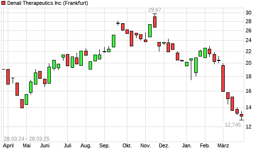 Mit dem Rücksetzer auf 12,90 EUR hat die Denali Therapeutics-Aktie (ISIN US24823R1059) am 27.03.2025 ein neues 5-Jahres-Tief erreicht und damit den Kurs vom 26.03.2025 eingestellt.