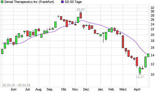 Mit dem Anstieg auf 14,14 EUR hat die Denali Therapeutics-Aktie am 29.04.2025 die 50-Tage-Linie nach oben gekreuzt.