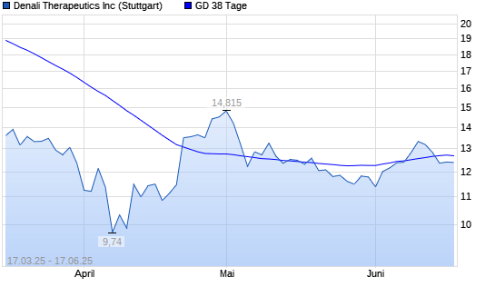 Mit dem Rücksetzer auf 12,73 EUR hat die Denali Therapeutics-Aktie am 16.06.2025 die 38-Tage-Linie nach unten gekreuzt.