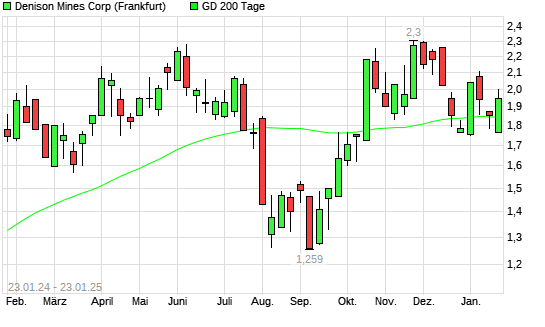 Mit dem Anstieg auf 2,00 EUR hat die Denison Mines-Aktie am 22.01.2025 die 200-Tage-Linie nach oben gekreuzt.