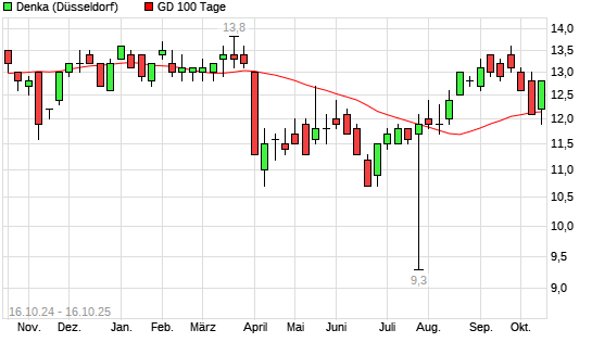 Mit dem Anstieg auf 12,40 EUR hat die Denka-Aktie am 15.10.2025 die 100-Tage-Linie nach oben gekreuzt.