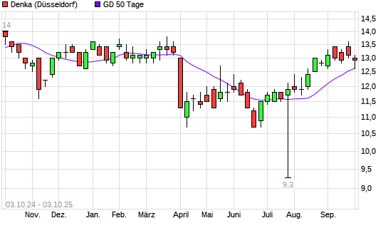 Mit dem Anstieg auf 12,90 EUR hat die Denka-Aktie am 02.10.2025 die 50-Tage-Linie nach oben gekreuzt.