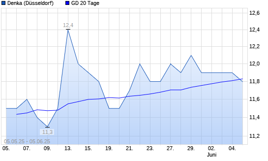 Mit dem Rücksetzer auf 12,10 EUR hat die Denka-Aktie am 04.06.2025 die 20-Tage-Linie nach unten gekreuzt.