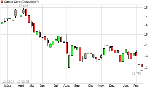 Mit dem Rücksetzer auf 12,07 EUR hat die Denso-Aktie (ISIN JP3551500006) am 12.02.2025 ein neues 6-Monats-Tief erreicht und damit den Kurs vom 10.02.2025 eingestellt.