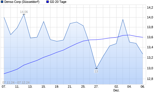 Mit dem Anstieg auf 13,82 EUR hat die Denso-Aktie am 06.12.2024 die 20-Tage-Linie nach oben gekreuzt.