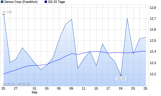 Mit dem Anstieg auf 12,52 EUR hat die Denso-Aktie am 24.09.2025 die 20-Tage-Linie nach oben gekreuzt.