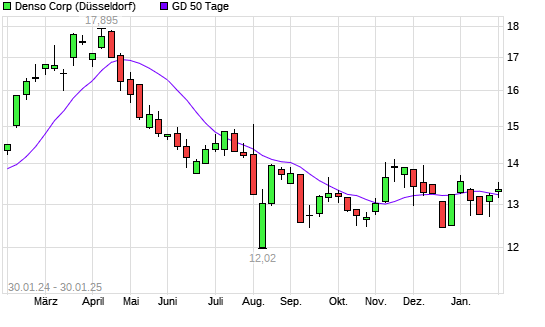 Mit dem Anstieg auf 13,27 EUR hat die Denso-Aktie am 29.01.2025 die 50-Tage-Linie nach oben gekreuzt.