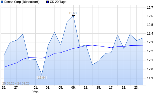 Mit dem Rücksetzer auf 12,38 EUR hat die Denso-Aktie am 23.09.2025 die 20-Tage-Linie nach unten gekreuzt.