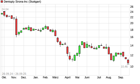 Mit dem Rücksetzer auf 10,46 EUR hat die Dentsply Sirona-Aktie (ISIN US24906P1093) am 25.09.2025 ein neues All-Time-Low erreicht und damit den Kurs vom 11.08.2025 eingestellt.