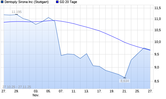 Mit dem Anstieg auf 9,70 EUR hat die Dentsply Sirona-Aktie am 26.11.2025 die 20-Tage-Linie nach oben gekreuzt.
