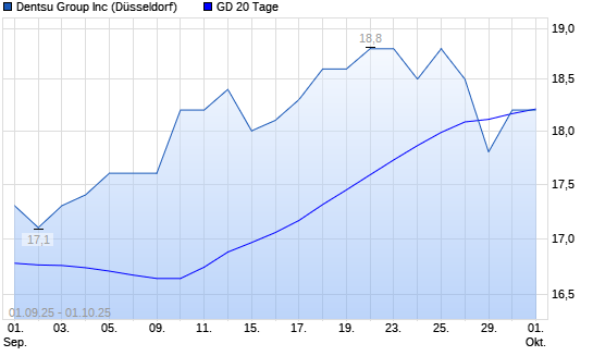 Mit dem Anstieg auf 18,20 EUR hat die Dentsu-Aktie am 30.09.2025 die 20-Tage-Linie nach oben gekreuzt.