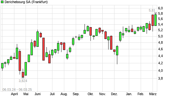 Mit dem Anstieg auf 5,60 EUR hat die Derichebourg-Aktie (ISIN FR0000053381) am 05.03.2025 ein neues 12-Monats-Hoch erreicht und damit den Kurs vom 03.03.2025 eingestellt.