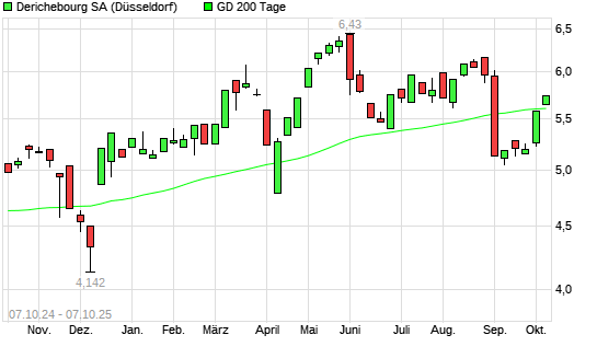 Mit dem Anstieg auf 5,72 EUR hat die Derichebourg-Aktie am 06.10.2025 die 200-Tage-Linie nach oben gekreuzt.