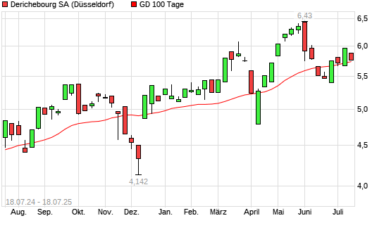 Mit dem Rücksetzer auf 5,70 EUR hat die Derichebourg-Aktie am 17.07.2025 die 100-Tage-Linie nach unten gekreuzt.