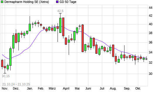 Mit dem Anstieg auf 32,80 EUR hat die Dermapharm Holding-Aktie am 20.10.2025 die 50-Tage-Linie nach oben gekreuzt.