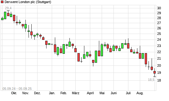 Mit dem Rücksetzer auf 18,80 EUR hat die Derwent London-Aktie (ISIN GB0002652740) am 04.09.2025 ein neues 10-Jahres-Tief erreicht und damit den Kurs vom 02.09.2025 eingestellt.