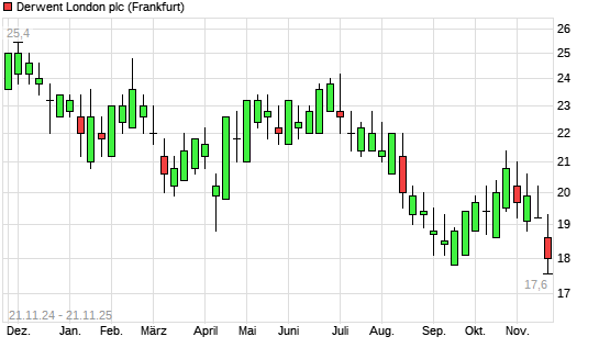 Mit dem Rücksetzer auf 18,30 EUR hat die Derwent London-Aktie (ISIN GB0002652740) am 20.11.2025 ein neues 10-Jahres-Tief erreicht und damit den Kurs vom 19.11.2025 eingestellt.