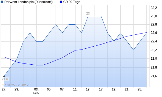 Mit dem Anstieg auf 23,00 EUR hat die Derwent London-Aktie am 25.02.2025 die 20-Tage-Linie nach oben gekreuzt.