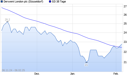 Mit dem Anstieg auf 23,00 EUR hat die Derwent London-Aktie am 05.02.2025 die 38-Tage-Linie nach oben gekreuzt.