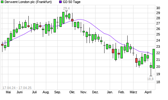 Mit dem Anstieg auf 22,20 EUR hat die Derwent London-Aktie am 16.04.2025 die 50-Tage-Linie nach oben gekreuzt.
