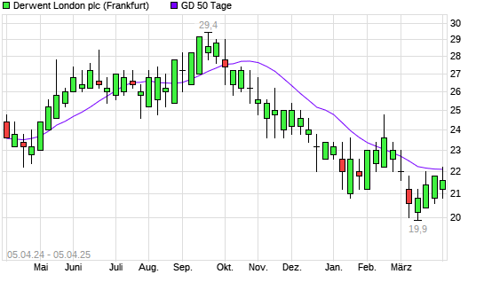 Mit dem Rücksetzer auf 21,60 EUR hat die Derwent London-Aktie am 04.04.2025 die 50-Tage-Linie nach unten gekreuzt.
