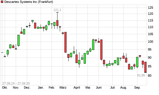 Mit dem Rücksetzer auf 81,85 EUR hat die Descartes Systems-Aktie (ISIN CA2499061083) am 26.09.2025 ein neues 12-Monats-Tief erreicht und damit den Kurs vom 25.09.2025 eingestellt.