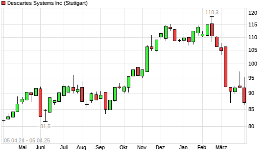 Mit dem Rücksetzer auf 86,95 EUR hat die Descartes Systems-Aktie (ISIN CA2499061083) am 04.04.2025 ein neues 6-Monats-Tief erreicht und damit den Kurs vom 11.03.2025 eingestellt.