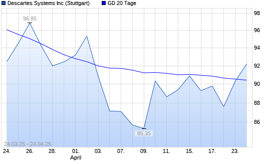 Mit dem Anstieg auf 91,90 EUR hat die Descartes Systems-Aktie am 23.04.2025 die 20-Tage-Linie nach oben gekreuzt.