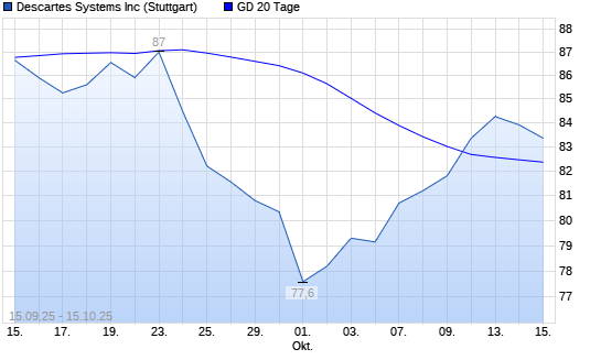 Mit dem Anstieg auf 82,60 EUR hat die Descartes Systems-Aktie am 14.10.2025 die 20-Tage-Linie nach oben gekreuzt.