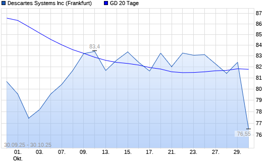 Mit dem Anstieg auf 82,40 EUR hat die Descartes Systems-Aktie am 29.10.2025 die 20-Tage-Linie nach oben gekreuzt.