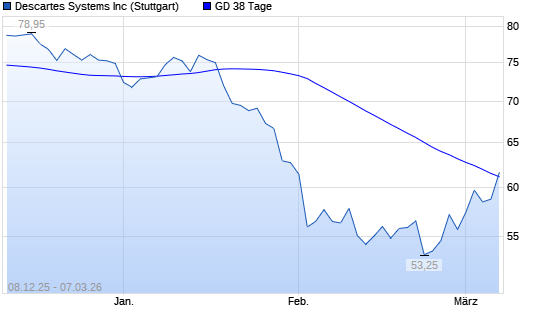 Mit dem Anstieg auf 63,20 EUR hat die Descartes Systems-Aktie am 06.03.2026 die 38-Tage-Linie nach oben gekreuzt.