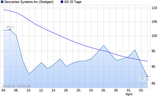 Mit dem Rücksetzer auf 91,00 EUR hat die Descartes Systems-Aktie am 03.04.2025 die 20-Tage-Linie nach unten gekreuzt.