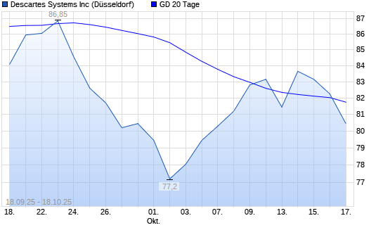 Mit dem Rücksetzer auf 81,60 EUR hat die Descartes Systems-Aktie am 17.10.2025 die 20-Tage-Linie nach unten gekreuzt.
